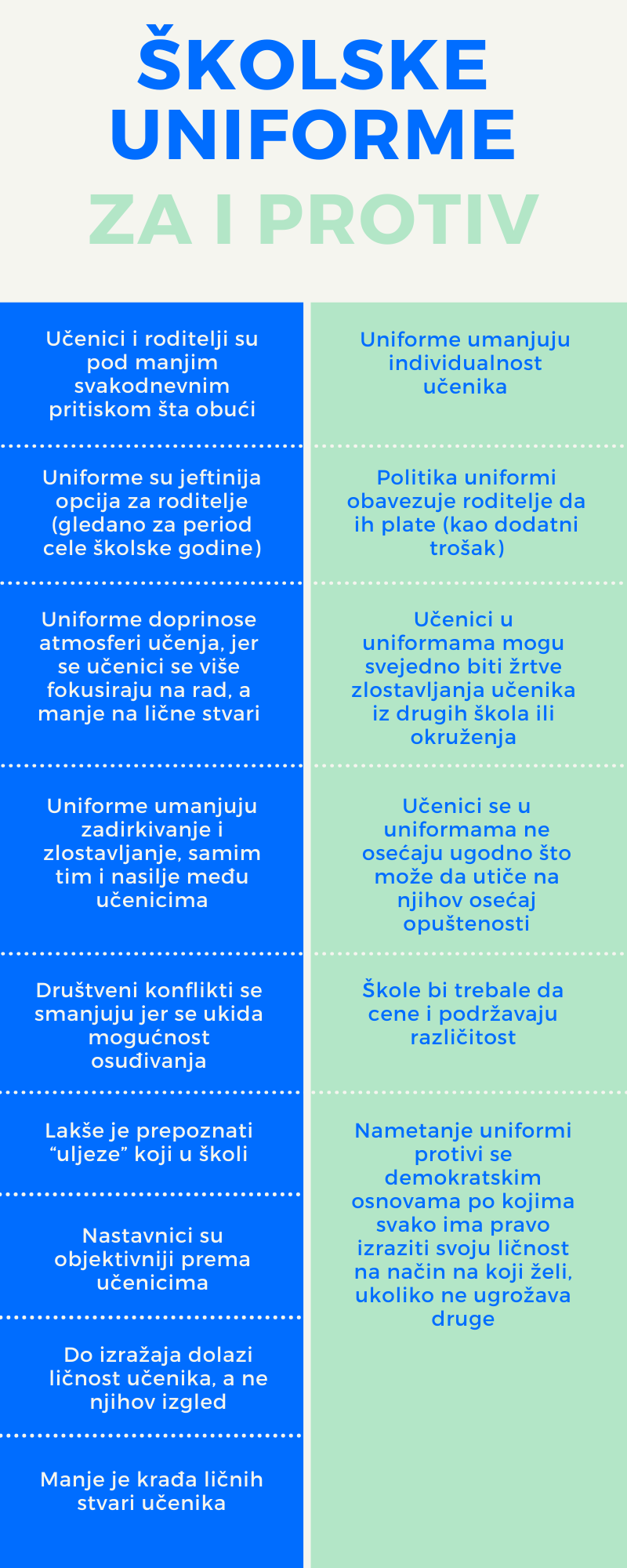 Školska uniforma - argumenti za i protiv